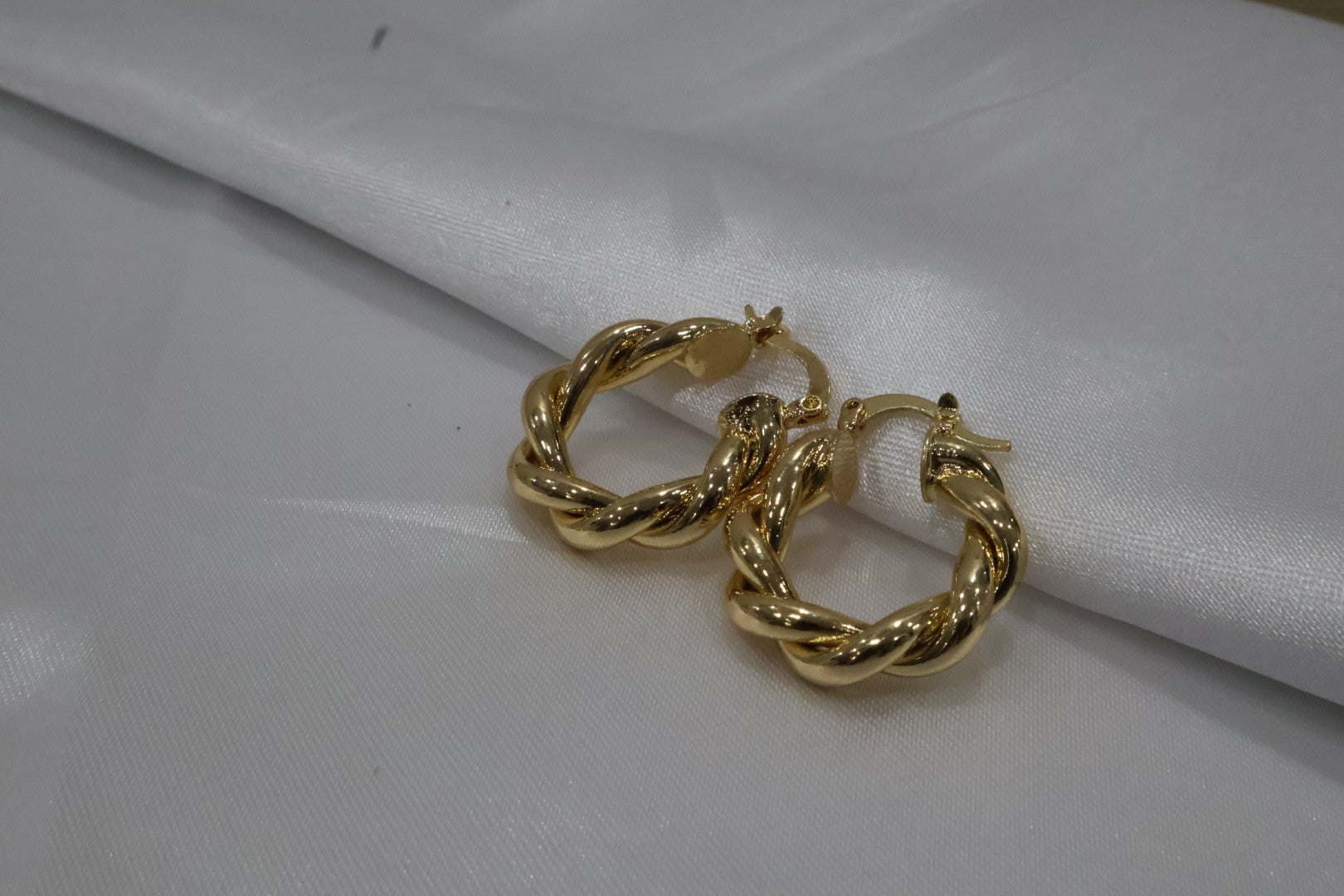 Bold twisted gold-tone hoop earrings featuring a chunky braided design with a smooth high-polish finish. These statement hoops add a modern, sculptural edge while maintaining timeless elegance—perfect for lovers of chunky hoops and trendy statement jewellery.