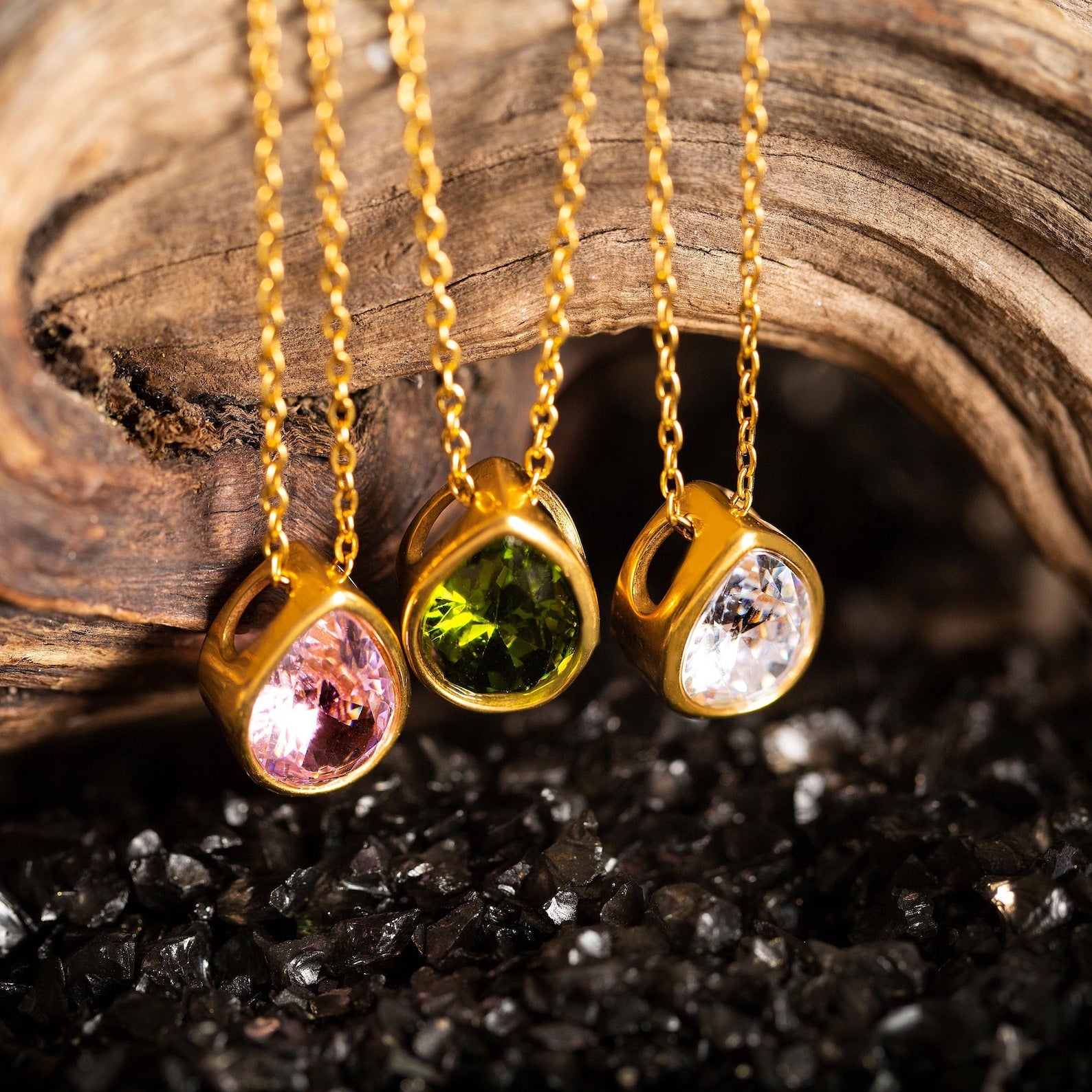 Materials: Cubic zirconia, Stainless steel, Yellow gold