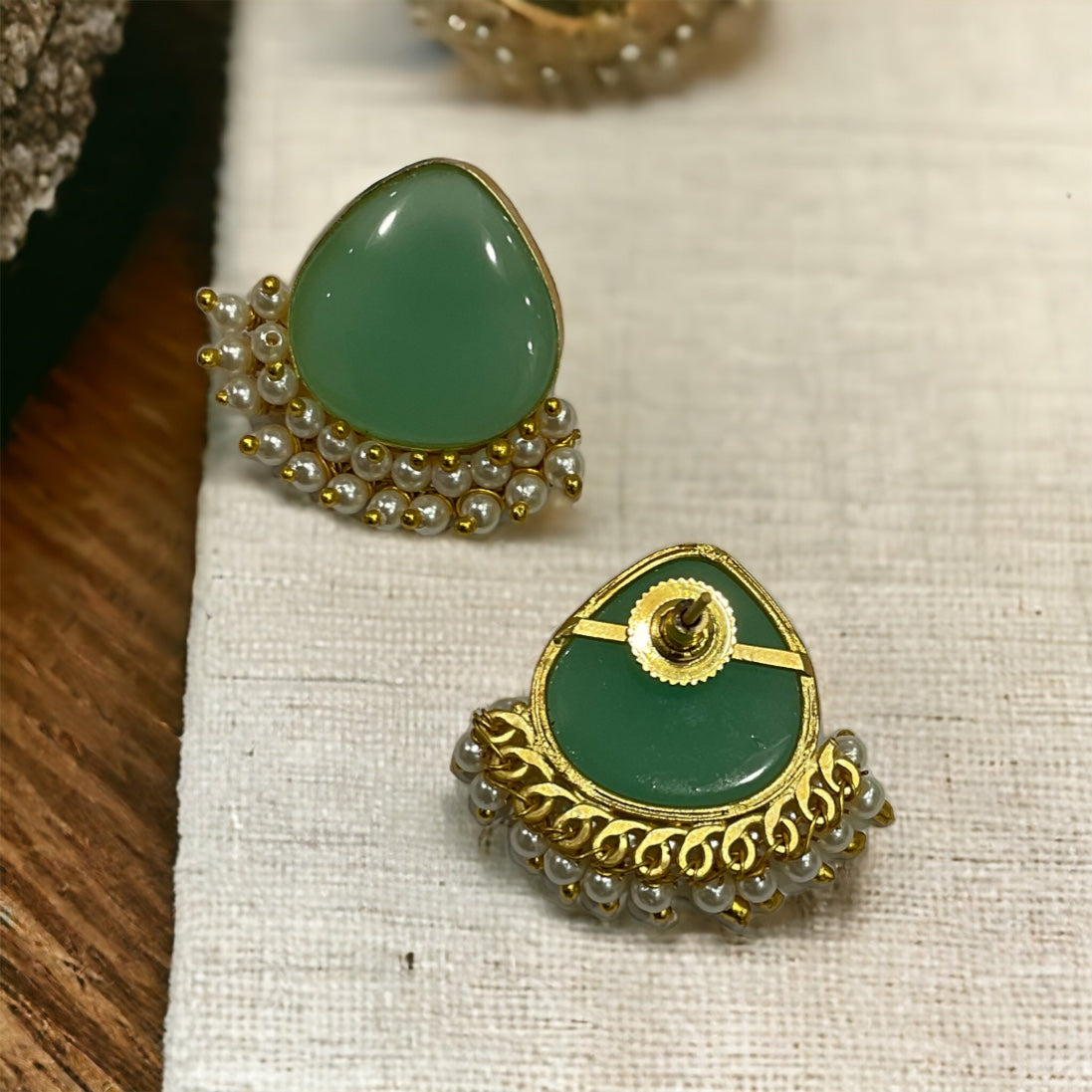 - Elegant & Trendy: Mint green stone framed by delicate pearl accents—eye-catching yet refined